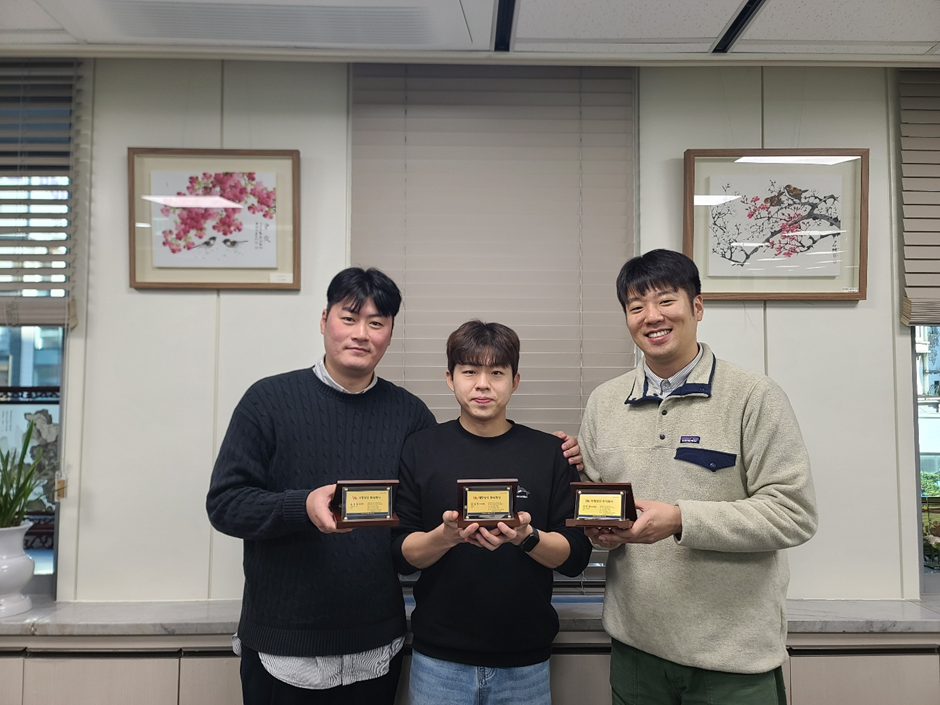 - 안녕하십니까, 태영상선(주) 경영기획팀 최인혁 책임입니다. 지난 월요일(11/10) 2025년 하반기 정기 승급자들인 재래선 영업1팀의 조정현 책임, 컨테이너 영업팀의 김민재 책임, 전산팀의 손승환 선임의 순금 명함 수여식을 진행하였습니다. 순금 명함은 단순한 상징 이상의 의미를 지니고 있습니다. 그동안의 헌신과 노력을 인정하는 동시에 앞으로도 태영상선의 성장을 함께 이끌어 나가자는 격려의 의미를 담고 있습니다. 수여자들은 “회사로부터 직접 공로를 인정받게 되어 큰 영광이며, 앞으로도 책임감 있는 자세로 업무에 임하겠다”고 소감을 ....